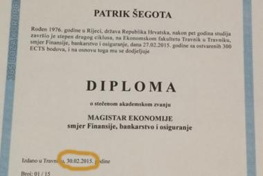 Hrvatu izdana diploma fakulteta u Travniku 30. februara?