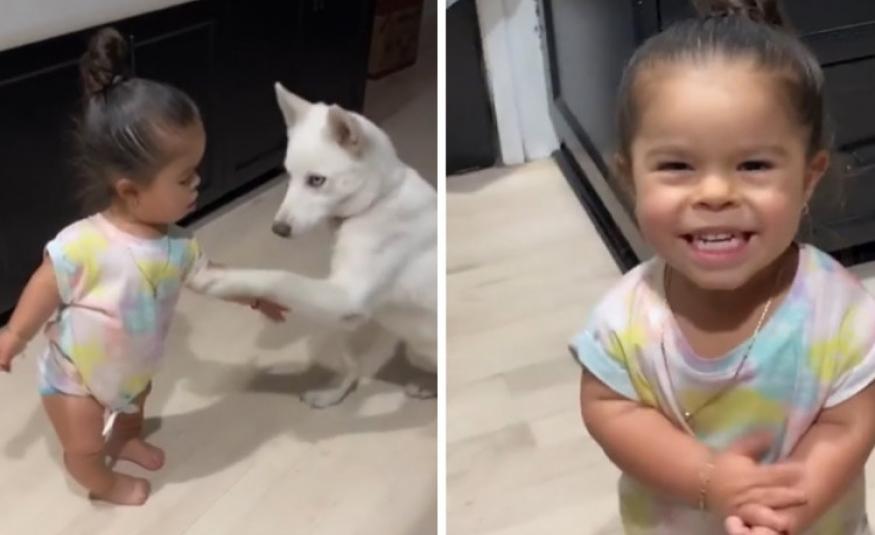 Trogodišnja djevojčica naučila svog psa trikovima, pozorno sluša naredbe