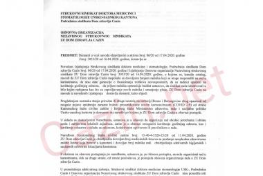 DEMANT DZ CAZIN: "Nije nam ponuđen niti jedan prijedlog, niti rješenje, za organizaciju rada u ustanovi i u karantenama od strane Sindikata USK"