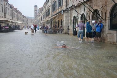 Jaka kiša potopila Dubrovnik: Iskočili šahtovi, popucao asfalt, centar grada neprohodan (VIDEO)