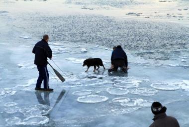 (FOTO) Skočio u ledeni Dunav da spasi psa