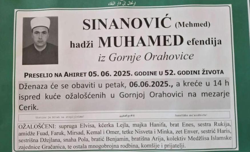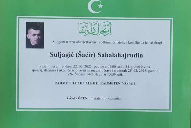 Tužna smrtovnica Sabalahajrudina: U utorak dženaza, a ožalošćenog nema nikog