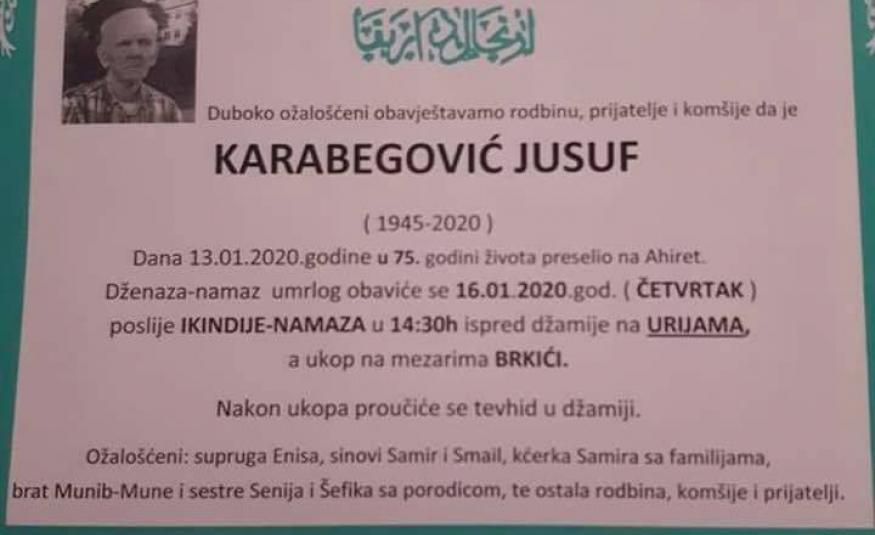 Na Ahiret preselio Karabegović Jusuf