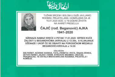 Na Ahiret preselila Čajić (Beganović) Ajka