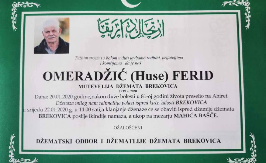 Na Ahiret preselio Omeradžić (Huse) Ferid