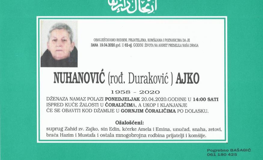 Na Ahiret preselila Nuhanović (Duraković) Ajko