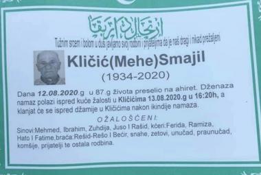 Na Ahiret preselio Kličić (Mehe) Smajil