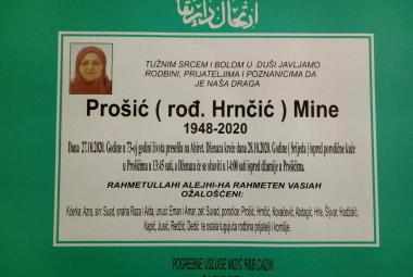Na Ahiret preselila Prošić (rođ. Hrnčić) Mine