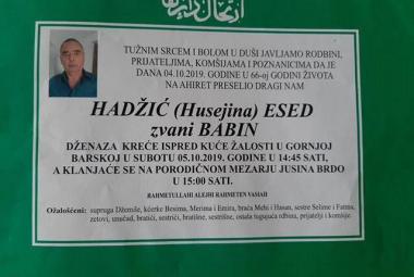 Na Ahiret preselio Hadžić (Husejina) Esad