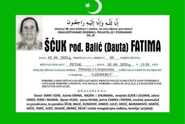 Na Ahiret preselila Šćuk rođ. Balić (Dauta) Fatima