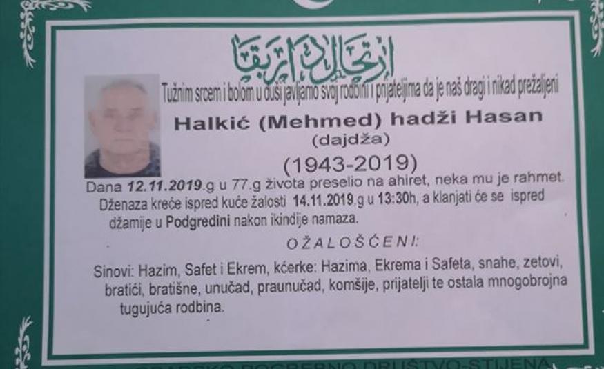 Na Ahiret preselio Halkić (Mehmed) hadži Hasan
