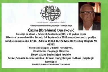 Na Ahiret preselio Ćazim (Ibrahima) Duraković