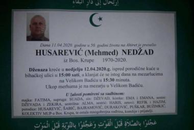 Na Ahiret preselio Husarević (Mehmed) Nedžad iz Bosanske Krupe