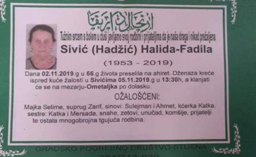 Na Ahiret preselila Sivić (Hadžić) Halida-Fadila