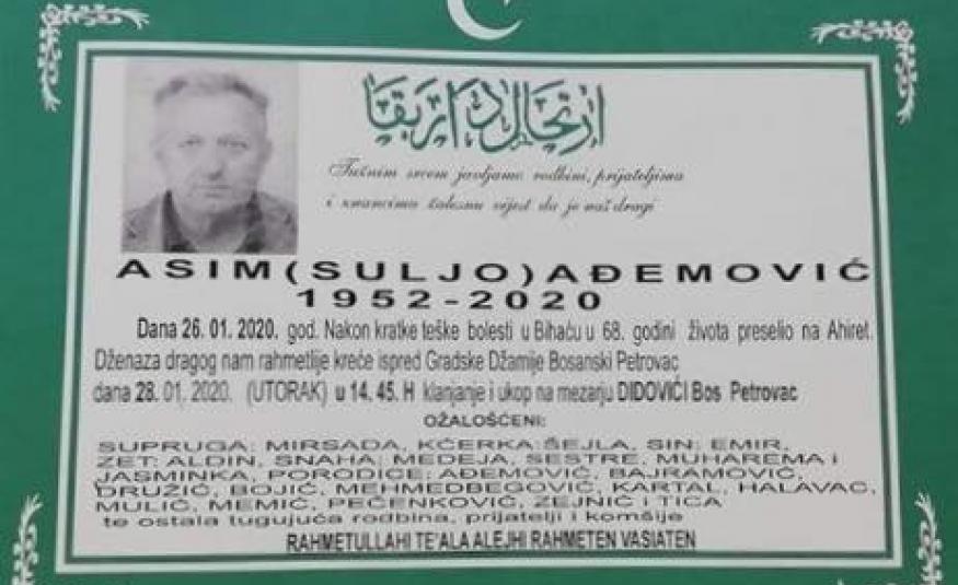 Na Ahiret preselio Asim (Suljo) Ađemović