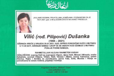 Na Ahiret preselila Vilić (rođ. Pilipović) Dušanka