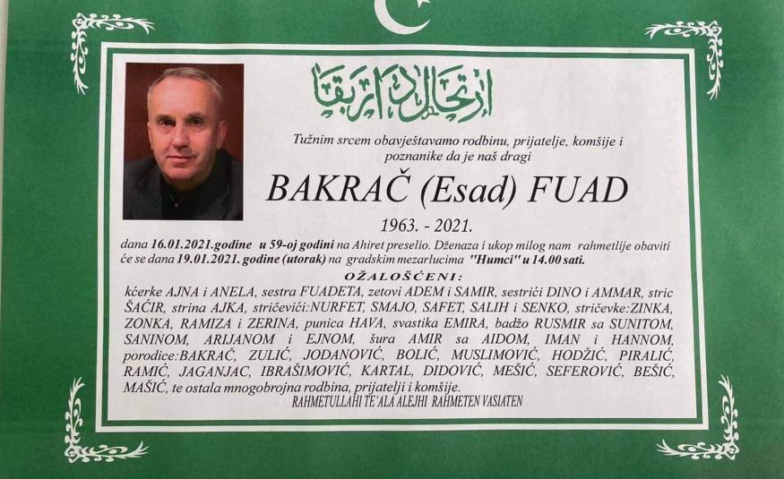 Na Ahiret preselio Bakrač (Esad) Fuad