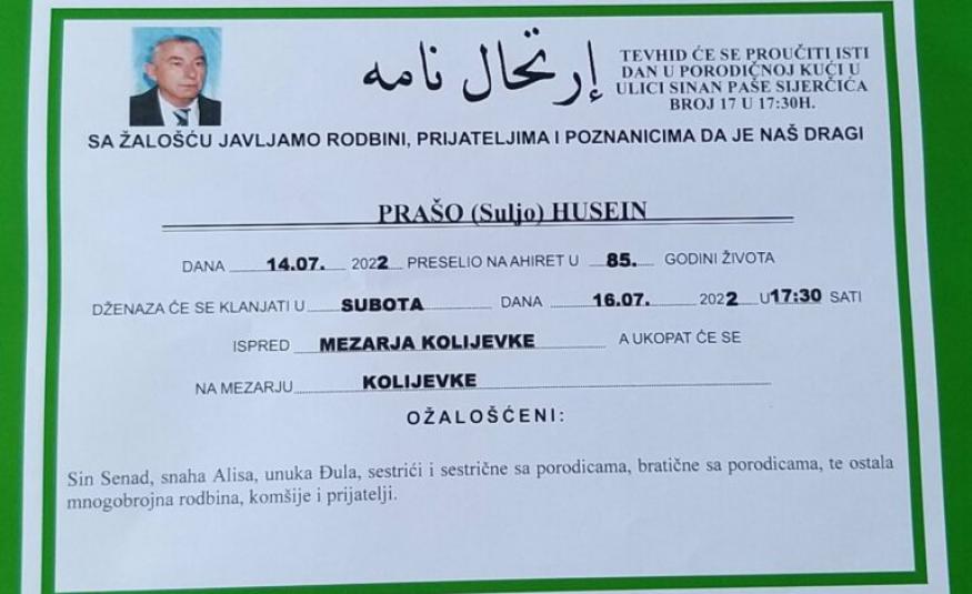 Preminuo epidemiolog Husein Prašo: Cijeli je život posvetio časnoj profesiji