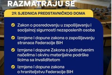 Na sutrašnjoj sjednici Parlamenta FBiH tri važna zakona iz resora rada i socijalne politike