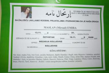 Emira Maslan biće ukopana u četvrtak u Goraždu