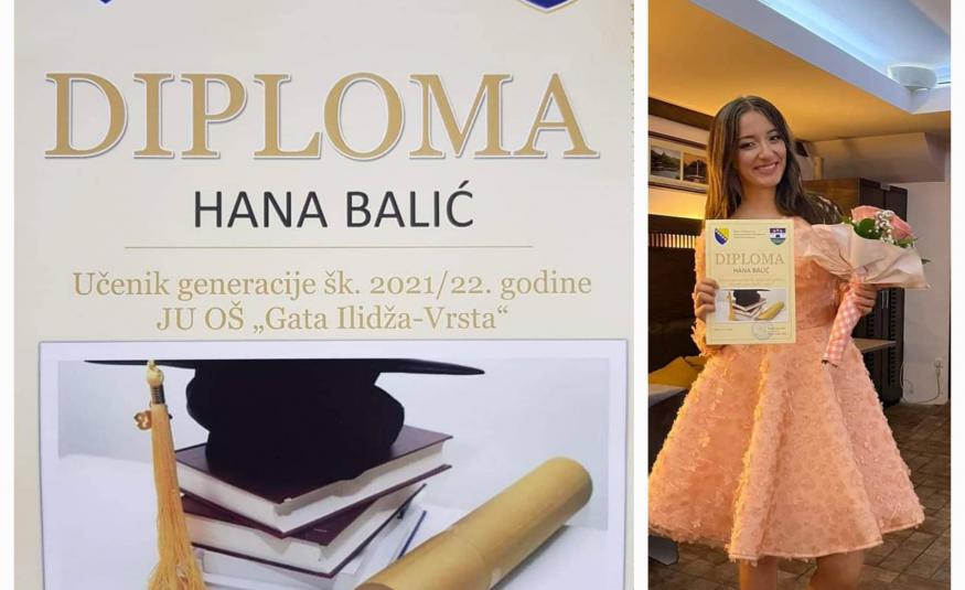 Učenica generacije JU OŠ 'Gata Ilidža-Vrsta'