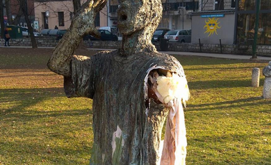 Gnusan čin: Oštećena skulptura koja simbolizira srebrenički genocid