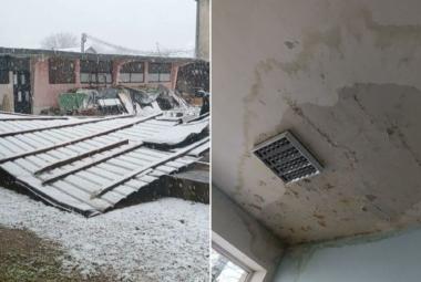 U Bihaću ponovo počeo da pada snijeg: Zbog jakog nevremena srušio se krov škole