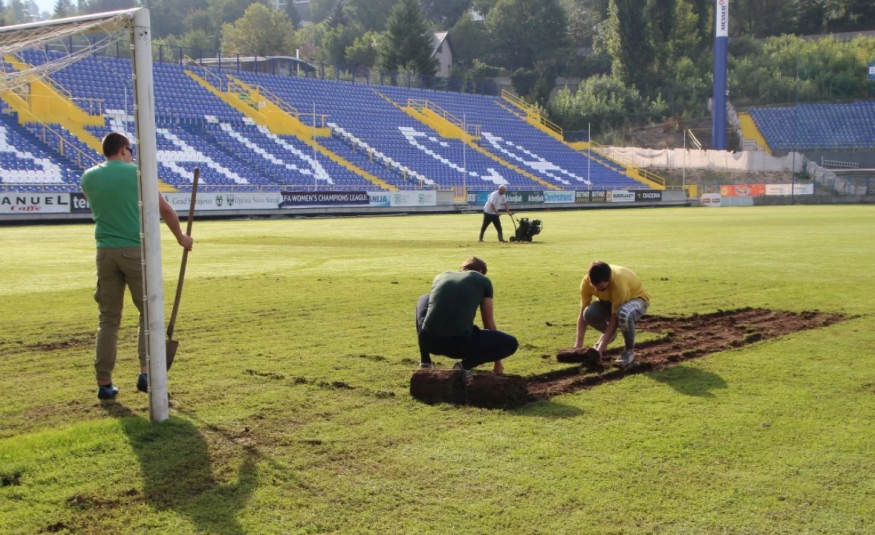 RADNA ATMOSFERA: Željezničar priprema Grbavicu za okršaj Zmajeva s Belgijom