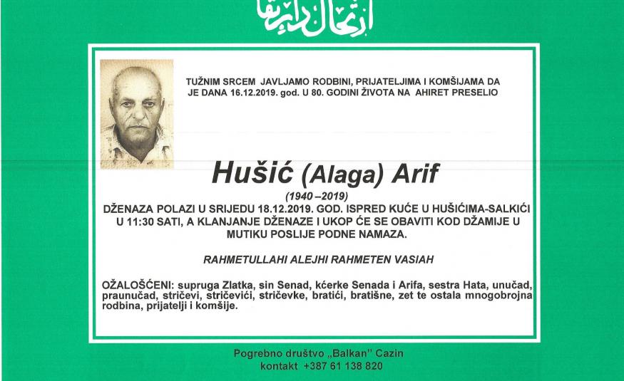 Na Ahiret preselio Hušić (Alaga) Arif