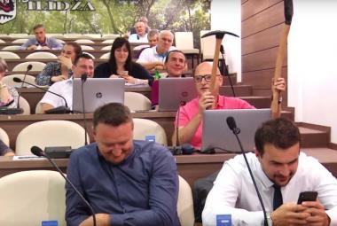 Vijećnik poklonio krampu i lopatu načelniku Ilidže (VIDEO)