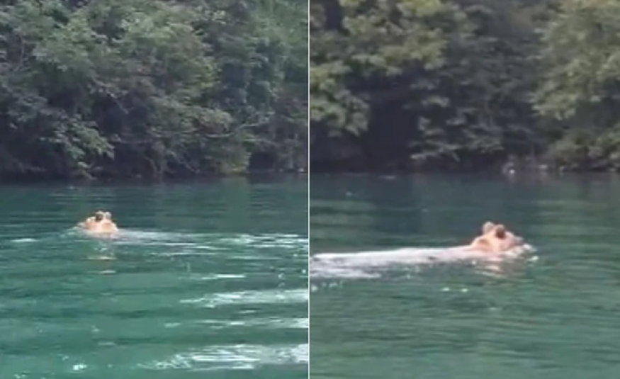 Medvjed snimljen kako pliva u Drini, spas od vrućine našao u vodi