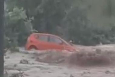 Apokaliptične scene Voda nosi automobil, prekinute putne komunikacije