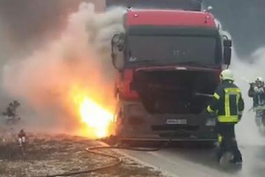 ŠTETA VELIKA: Kod Kalesije se zapalio kamion koji je prevozio boksit