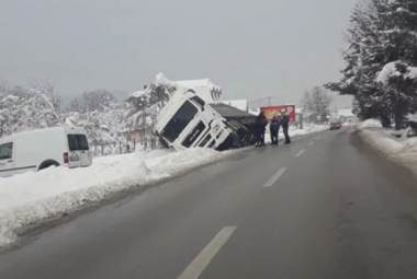 Prevrnuo se kamion kod Kiseljaka uslijed proklizavanja na putu