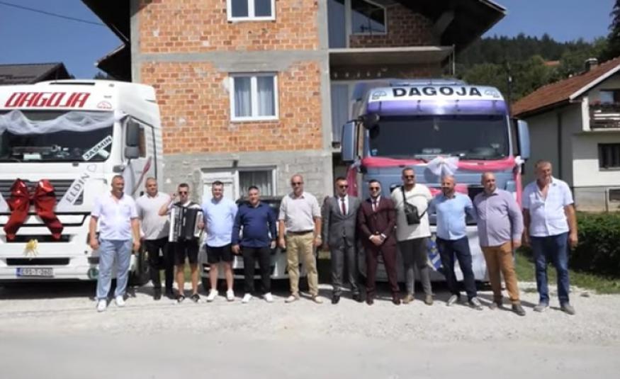 Svadba za pamćenje u Bugojnu: Po mladu došli kamionima (VIDEO)
