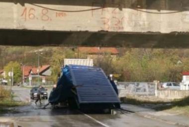 Loša procjena kamiondžije: Kamionom prolazio ispod mosta, pa ostao bez prikolice