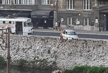 Obrušio se zid iznad korita Miljacke nakon što se automobil zabio u njega