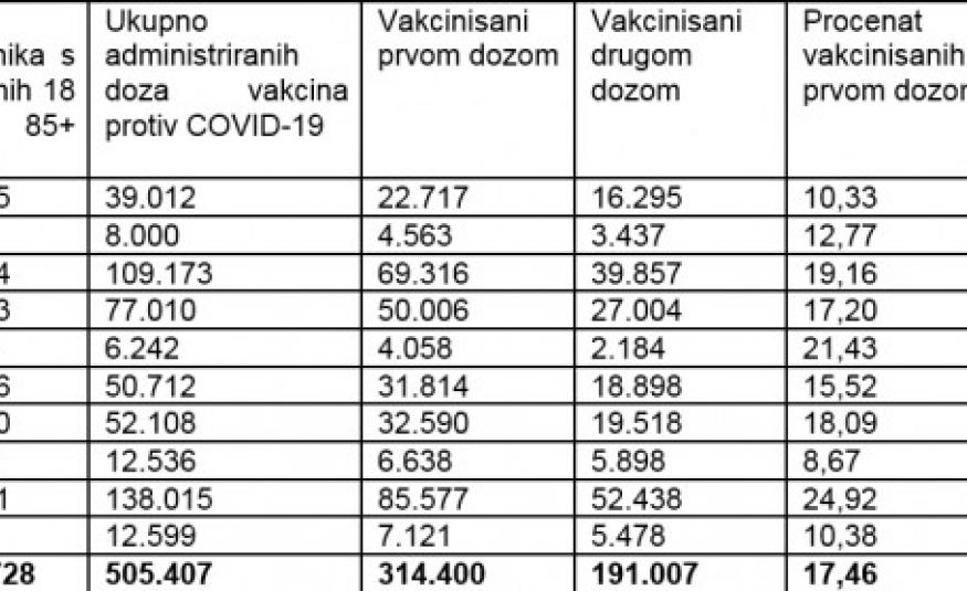 U FBiH drugu dozu primilo oko 11 posto gradjana- USK medju najlošijim
