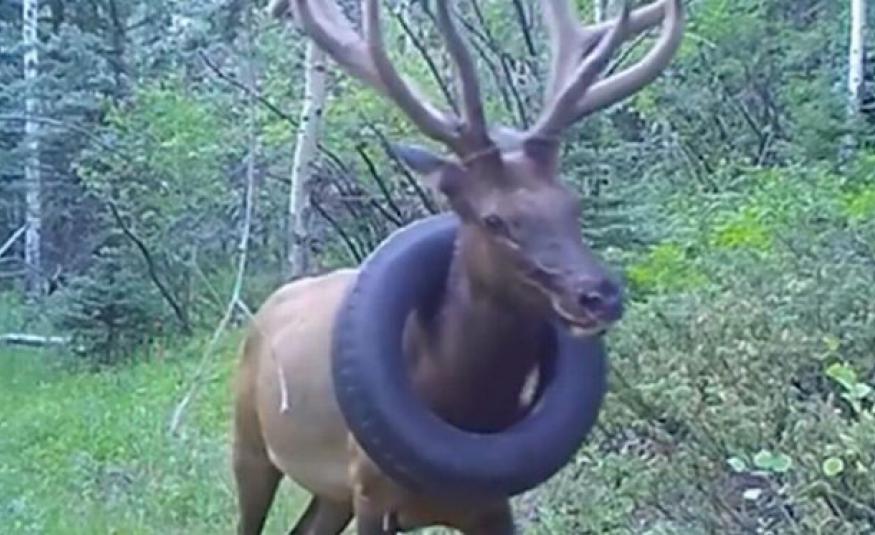 Jelen više od dvije godine nosio automobilsku gumu oko vrata