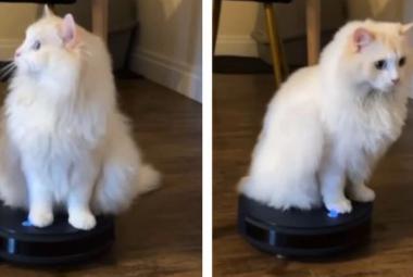 Mačak se obožava voziti na robotskom usisivaču i doslovno mu ništa nije prepreka