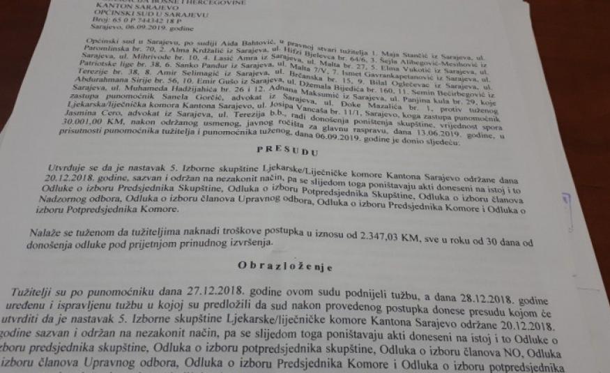 Sud poništio izbore u Ljekarskoj komori Kantona Sarajevo