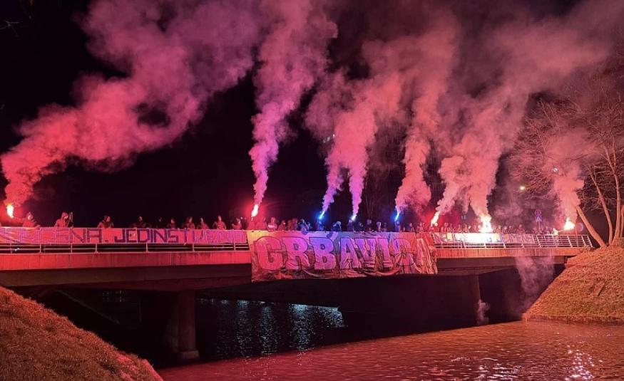 Manijaci bakljadom i parolom na mostu obilježili godišnjicu povratka na Grbavicu
