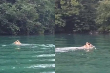 Medvjed snimljen kako pliva u Drini, spas od vrućine našao u vodi