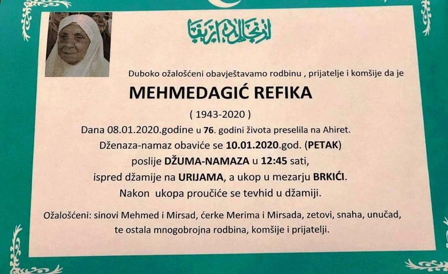 Na Ahiret preselila Mehmedagić Refika