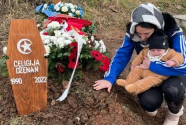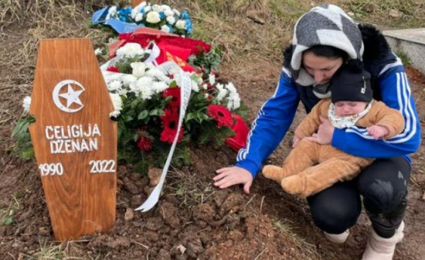 Supruga preminulog Dženana Čeligije na mezaru s petomjesečnom bebom u naručju: Tu smo nas troje, naša mala porodica...