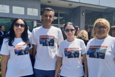 Građani se okupili ispred Suda BiH, imaju majice sa likom Milorada Dodika