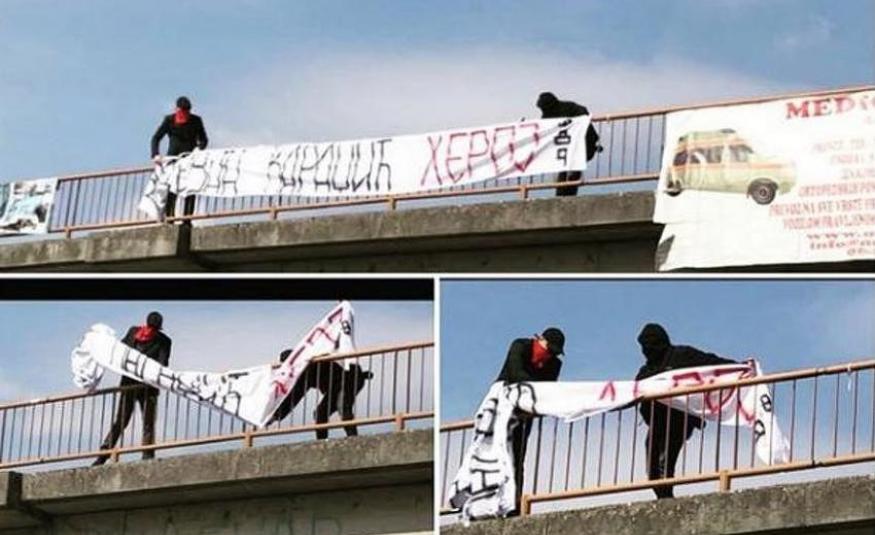 Mladi iz Vojvodine skinuli i zapalili transparent koji veliča Radovana Karadžića