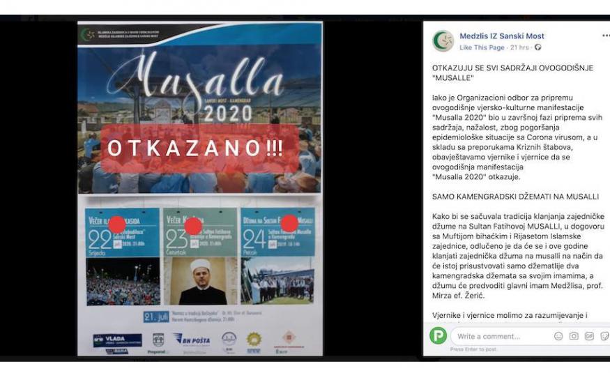 Otkazana manifestacija "Musalla 2020" u Sanskom Mostu