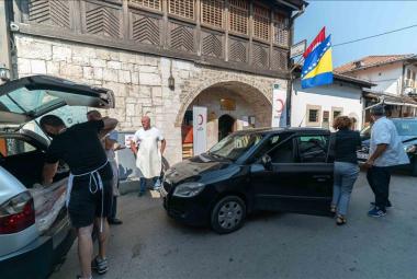 Kolone vozila ispred Narodne kuhinje Stari Grad u Sarajevu