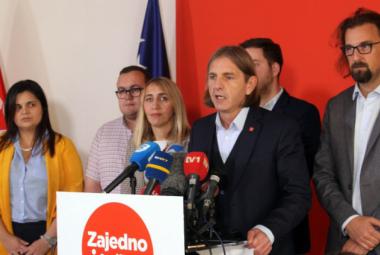 Sastanak lidera DF-a, SDP-a i Naše stranke u zgradi Predsjedništva BiH